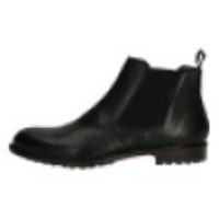 Svart boots i skinn från Bugatti med två resårer, mönstrad gummisula och tunnt textilfoder.