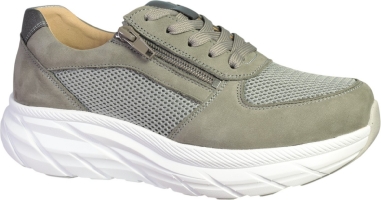 Promenadsko i grå/brun ovandel och vit sula från G Comfort. Den har en bred läst och uttagbara sulor med plats för egna inlägg. Snörning och en dragkedja på utsidan.