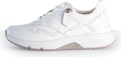 Promenadsko i vitt skinn från Gabors sportiga kollektion Rollingsoft. Den har snörning och en dragkedja på utsidan. Uttagbara sulor med plats för egna inlägg.