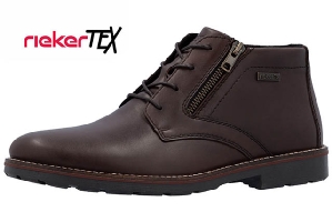 Känga i brunt skinn från Rieker. Den har snörning och en dragkedja på utsidan, gummisula.Tunnfodrad.