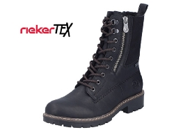 Känga i svart med snörning och dragkedja på insidan från Rieker. Den är varmfodrad och har en grov sula.
