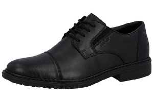 Svart sko från Rieker med bredare läst, snörning och med tunn gummisula.