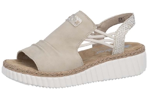 Beige sandal från Rieker. Den har en grov sula och resårer på sidorna.