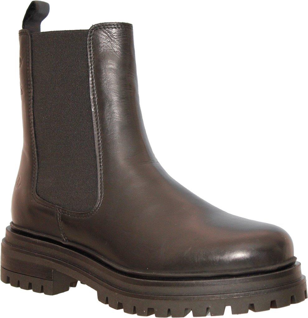 Boots från Rosa Negra i svart skinn med grov gummisula. Den har en dragkedja på insidan och resår på utsidan.