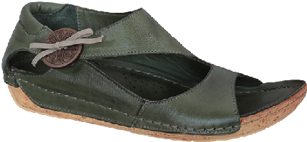 Skinnsandal från Rosa Negra Comfort i khakigrönt och med ljus sula. Sko med resår i sidan som gör den lätt att ta på.