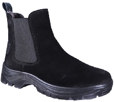 Varmfodrad med fårskinn , svart mocka känga från Rosa Negra. Den har en dragkedja på insidan och uttagbara sulor med plats för egna inlägg. Vändbara broddar på sula och klack så man klarar även halka.