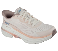 Sportig promenadsko från Skechers. Enkel att ta på, Slip-Ins, bara att trampa i utan skohorn. Mycket bra dämpning, max cushion sula och Archfit som gör den stabil. Uttagbara sulor och maskintvättbar.Beige/aprikos färg.