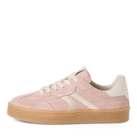 Promenadsko i rosa mocka med vita ditaljer och ljus sula. Snörning och löstagbara innesulor med plats för egna inlägg.