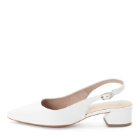 Sandalett/slimback i vitt skonn från Tamaris, med reglerbart spänne vid hälen.