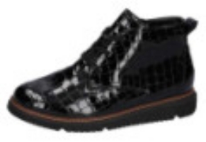 Känga i svart skinnlack från Waldläufer. Den har en snörning samt en dragkedja på insidan. Bred läst K-vidd och uttagbara sulor med plats för egna inlägg.