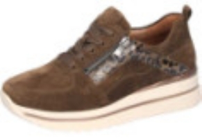 Bred promenadskor från tyska Waldlaufer i brun mocka med ton i ton djurmönster på in och utsidan. Snörning och även dragkedja, mjuk o dämpande sula. Skinnklädd även invändigt. K-vidd.