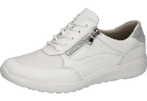 Promenadsko i vitt skinn från Waldläufer. Den har snörning och en dragkedja i silverfärg på utsidan. Bred läst K-vidd och uttagbara sulor med plats för egna inlägg.
